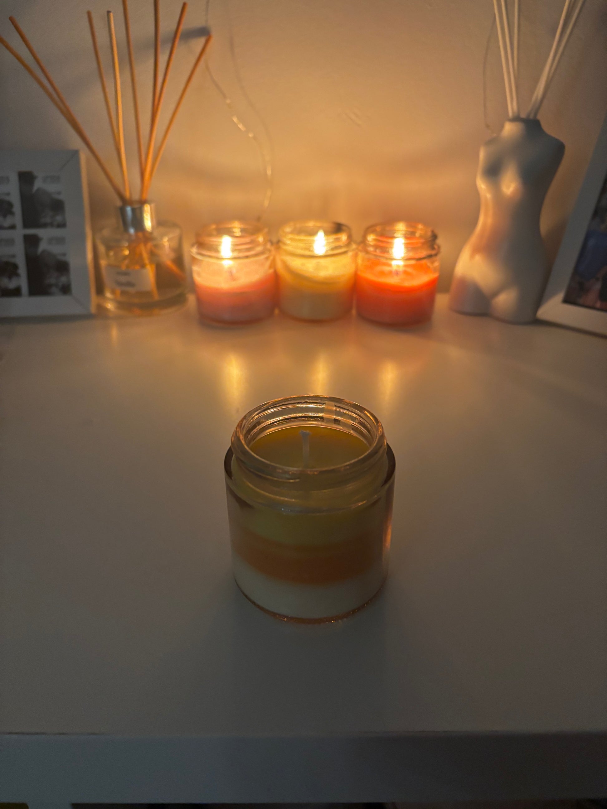 Bring the sweet nostalgia of Halloween into your home with our Candy Corn Candle. This delightful blend layers creamy vanilla, rich caramel, and a touch of honeyed sugar — just like your favorite fall treat. Hand-poured with natural soy wax and a cotton wick, it fills your space with cozy warmth and playful sweetness, perfect for crisp October nights and festive gatherings.