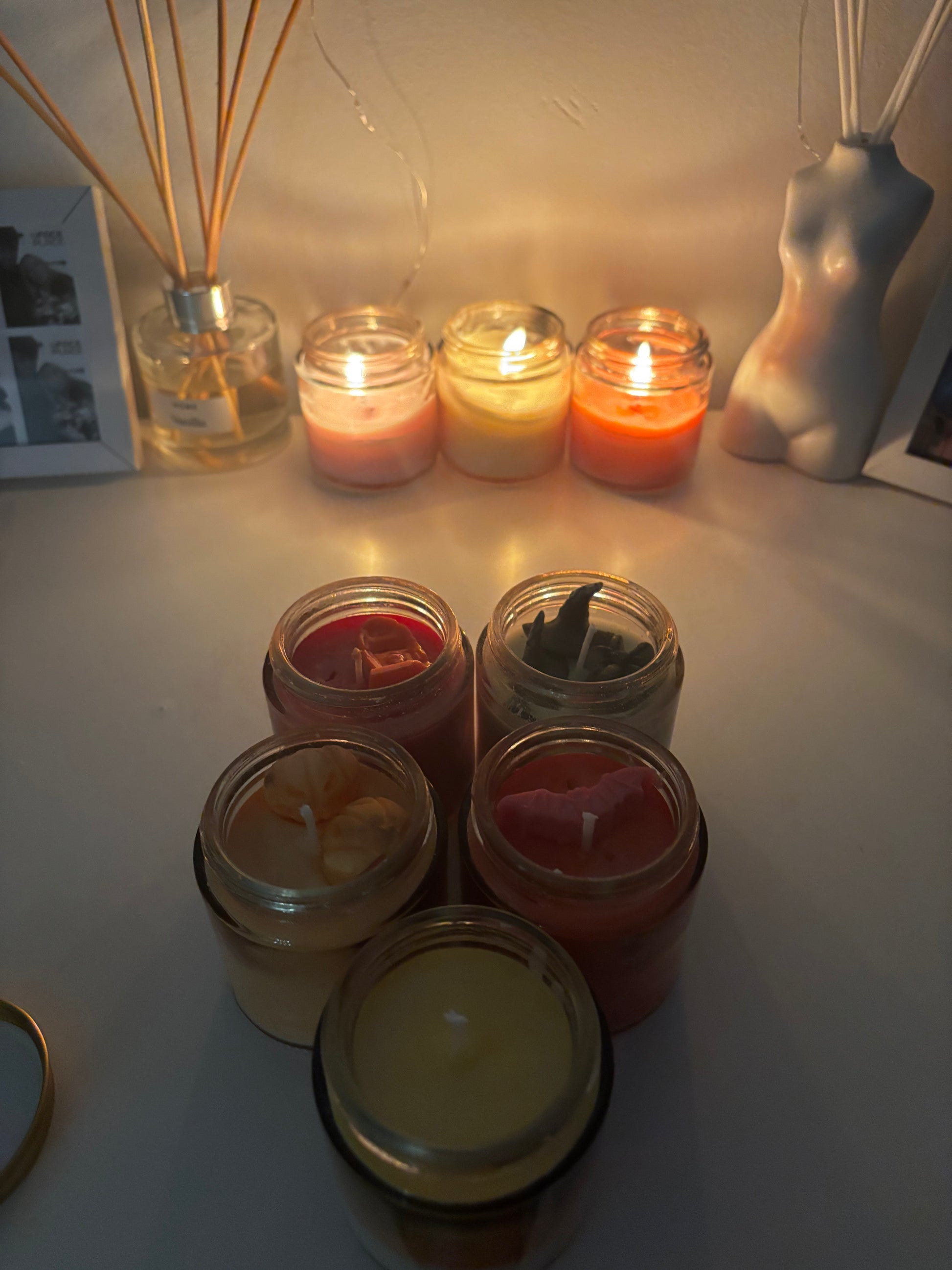 Celebrate the cozy magic of autumn with our Fall Candle Collection — a hand-poured lineup of seasonal favorites that capture the heart of the harvest season. From the sweet nostalgia of Candy Corn and the comforting spice of Pumpkin Patch, to the enchanting mystery of Witch’s Brew, the orchard warmth of Caramel Apple, and the golden glow of Spiced Cider — each candle tells its own story of fall. Crafted with natural soy wax and cotton wicks, these scents fill your home with the warmth, comfort, and wonder of the season.